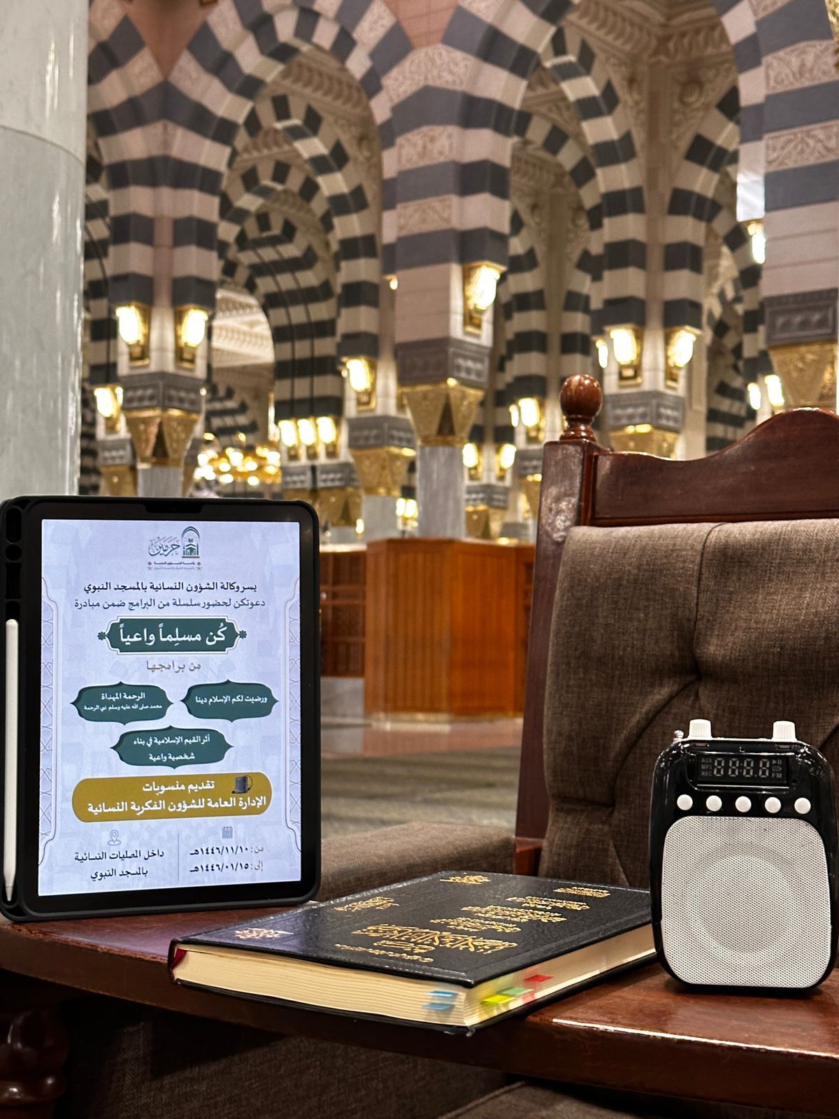 ‏أطلقت وكالة الشؤون النسائية بالمسجد النبوي ممثلة في الإدارة العامة للشؤون الفكرية مبادرة ( كن مسلماً واعياً ) وتأتي هذه المبادرة وفق الخطة التشغيلية  للوكالة،