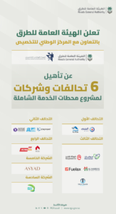 هيئة الطرق تعلن أسماء المتأهلين لمنافسة مشروع محطات الخدمة الشاملة