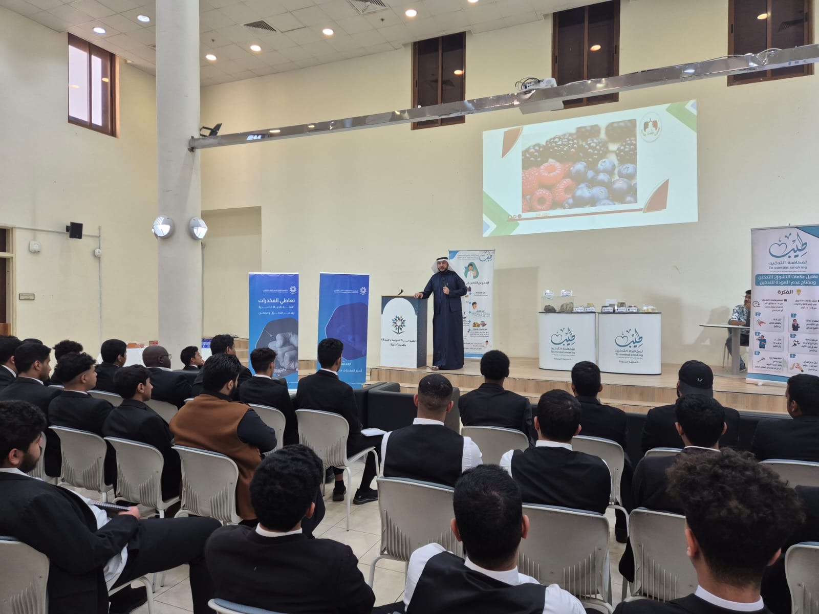 تنظم الكلية التقنية للسياحة والفندقة بالمدينة المنورة، بالتعاون مع جمعية طيب لمكافحة التدخين، حملة توعوية تستمر لمدة أربعة أيام، تهدف إلى التعريف بأضرار المخدرات وأخطار التدخين، وتعزيز الوعي الصحي والسلوكي لدى المتدربين.